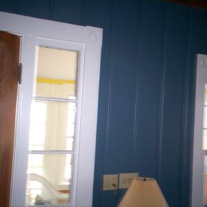 Interior painting to living room walls, ceiling and trim. Deep base blue, 3 coats, 2 tone living room.